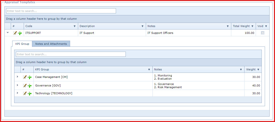 and maintain "Key Performance Indicators (KPI)" for a KPI Group. The template