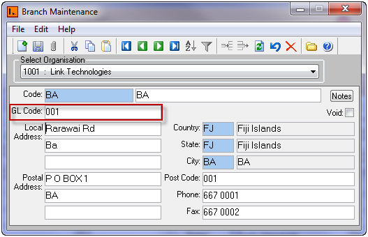 4. Enter appropriate Branch GL code in Branch Maintenance Screen (214). Leave GL code blank if Branch code is not one of the segments GL.