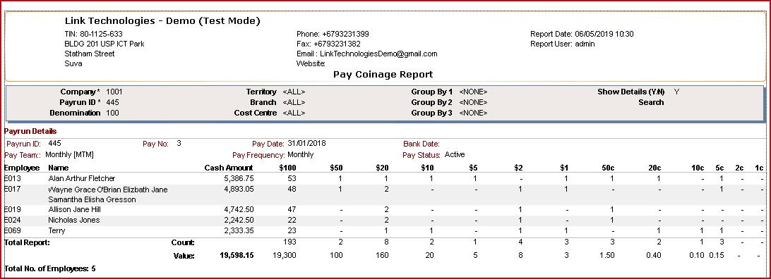 Pay Coinage Report