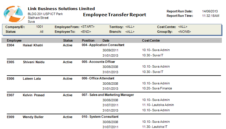Employee Transfer Report