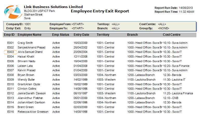 Employee Entry Exit Report