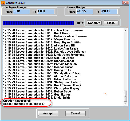 Select Accept and the system will allocate the leave types to the employees.