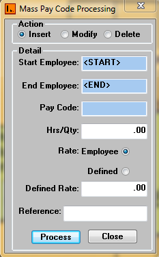 1.      Double click on Mass Pay Code Processing menu. This will load the screen with the pays that are open.