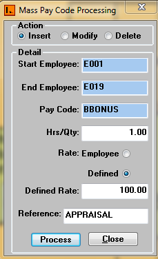 9.      Select Process. This will insert the selected pay code for all the employees within the pay team selected.