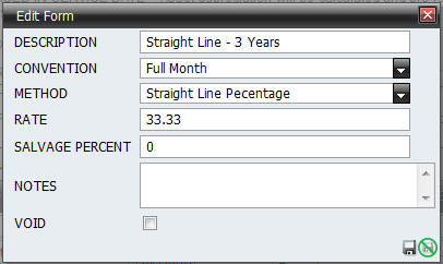 | Void | You may Void a depreciation rule. |