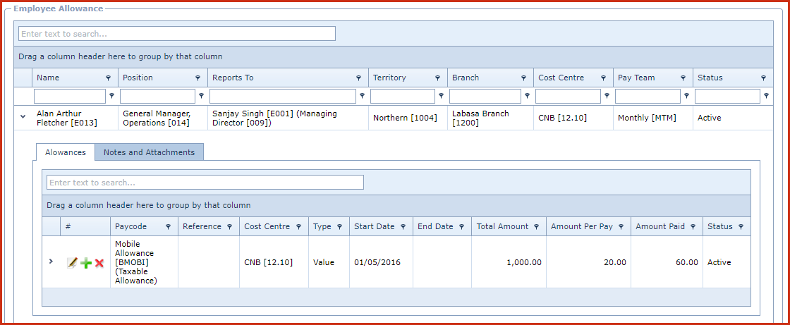| Paycode | List of Paycodes filtered by "Paycode Types: Taxable Allowance, Tax Adjustment & Non-Taxable Allowance" |