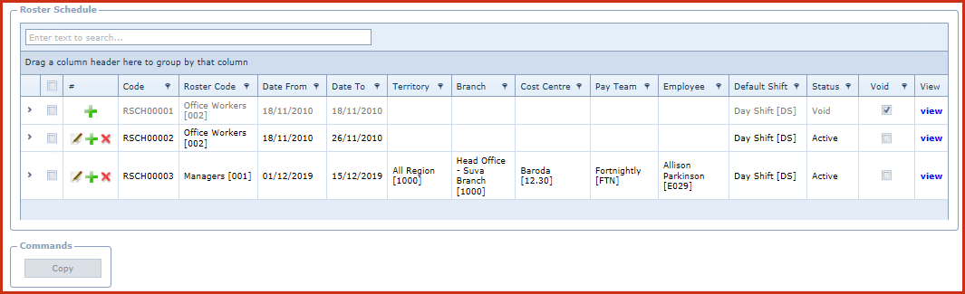 roster schedule provides a spreadsheet with a calendar view of the roster.